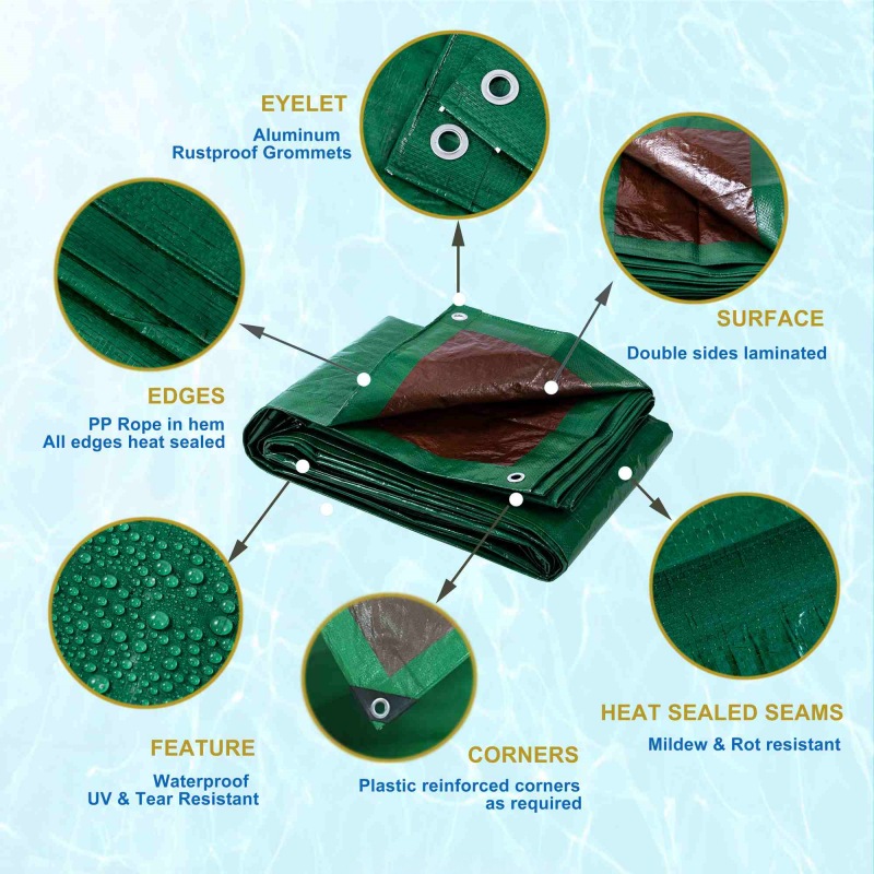 8'x10' 110GSM ブラウン グリーン PE ターポリン カバー保護用